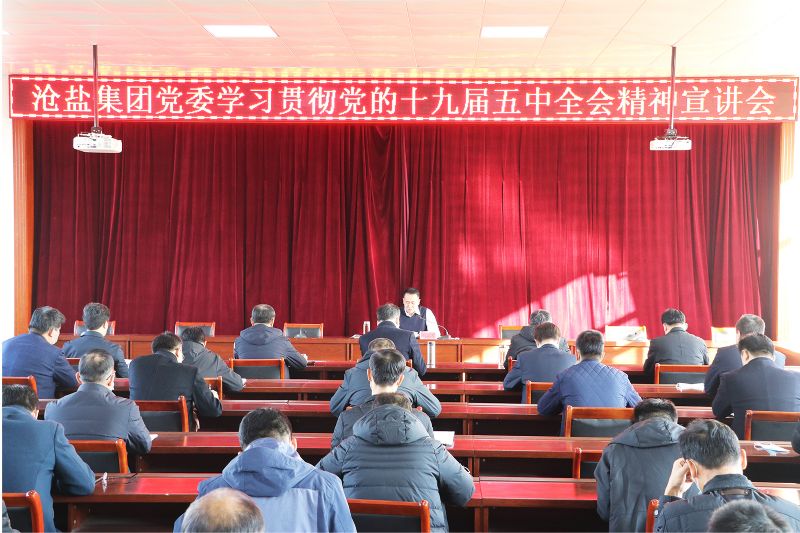 12月4日,滄鹽集團黨委學習貫徹黨的十九屆五中全會精神宣講會在公司二樓禮堂舉行。黨委書記、董事長劉建軍作宣講報告。