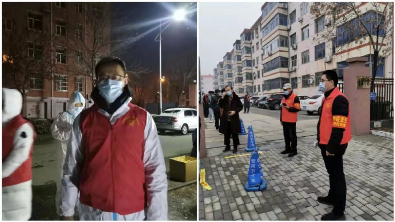“一夜之間封控了,首先感到的是恐慌,可是,做為共產(chǎn)黨員的我,感受到了疫情的嚴峻,疫情就是沖鋒號,我第一時間就是給社區(qū)打電話,報名加入志愿者,加入戰(zhàn)斗”保衛(wèi)部職工陳寶龍第一時間在渤海新區(qū)紅郡小區(qū)參加了疫情防控志愿服務。