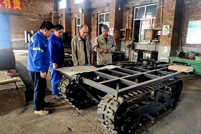 自SYJ-I型履帶式收鹽多用機于今年3月份在長蘆鹽業公司六工區進行扒鹽試驗取得初步成功后,本著提高設備技術含量、服務一線原鹽生產的宗旨,工貿公司先后針對性地對其進行了技術再升級。技術研發部門多次組織技術人員深入到長蘆鹽業公司一線扒鹽作業現場進行實地調研,與操作人員進行咨詢溝通,了解新設備在使用過程中的性能,掌握具體技術數據,并根據一線職工的反饋,針對收鹽機使用過程中存在的問題,對標技術數據確定了更適合生產實際的改進思路。