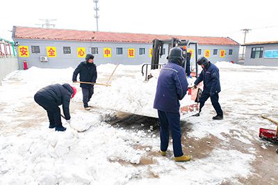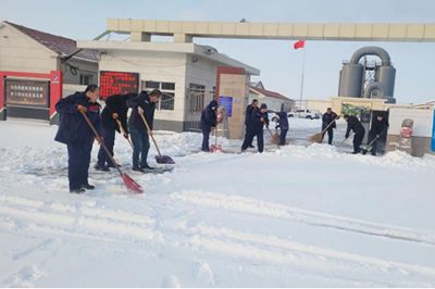 12月13日至15日的降雪天氣過程,場區降水量達到10.3毫米,各生產廠區積雪厚度超過10厘米,給職工出行和正常生產帶來較大影響。15日清晨,各單位積極行動,組織在崗黨員干部職工,全力清除積雪。