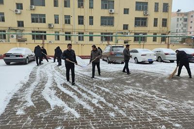 機關黨總支黨員領導干部率先垂范,黨員突擊隊成員、入黨積極分子沖鋒在前,全身心的投入到除雪工作中,經過浴“雪”奮戰,院內外積雪得到了及時清理。