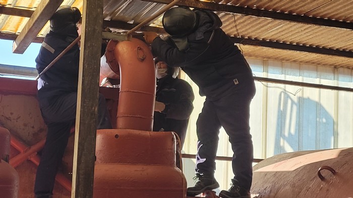 雖然近期天氣嚴寒,夜間氣溫降至零下十幾度,但為了盡快完成維修任務,溴素二廠職工們不畏寒冷,穿戴齊全防寒服、棉靴子、皮棉帽和棉手套等御寒護具,在共產黨員、班組長的帶領下,全力投入維保工作。叉車在廠區(qū)來回穿梭,職工們不懼寒風凜冽,干得熱火朝天。