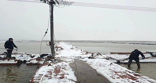 根據(jù)天氣預(yù)報,長蘆公司提前做好保鹵、加深結(jié)晶池、防滑防凍、留崗值班、交通安全等防災(zāi)減災(zāi)安排。全體生產(chǎn)管理人員、制鹵人員堅守崗位,冒著暴風(fēng)雪寒潮開啟循環(huán)串壕、融化積雪,徹夜進行結(jié)晶池和調(diào)節(jié)池片淡,盡最大限度減少鹽鹵損失。