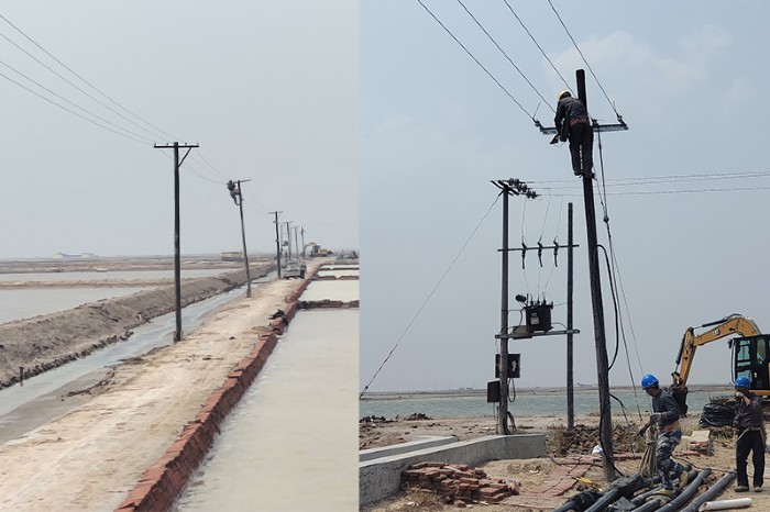 春扒將至,為了保障春扒順利進行,青鋒鹽業(yè)有限公司針對鹽區(qū)電力實際,從4月28日開始,利用三天時間,對二、三號灘的輸電線路進行了更新。