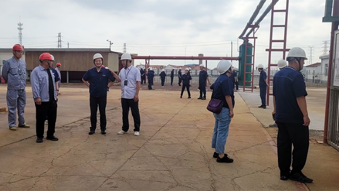 溴素公司經理李東亮陪同張偉一行深入溴素二廠生產現場,對溴素生產硫磺車間、富集車間、精餾車間等進行現場觀摩,并詳細介紹了溴素生產工藝特點、發展改進過程、生產工序、自動化操作等,分享了在溴素生產過程中,進一步完善安全生產標準化建設、提高生產效率、提升產品質量、推動產業升級等方面的經驗和做法。