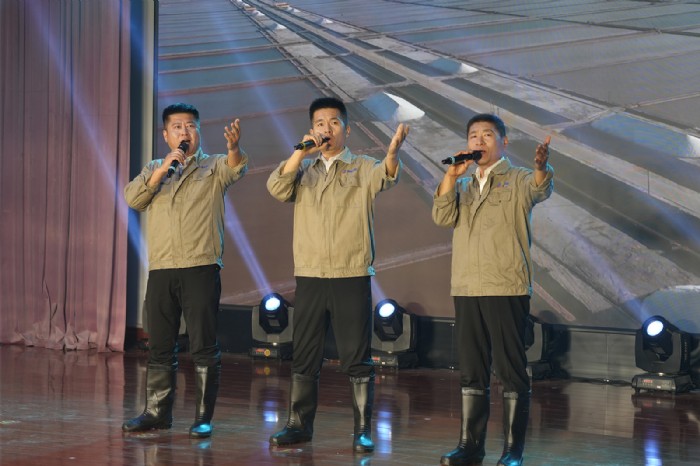 聯(lián)歡會(huì)在黃驊市紅色朝陽(yáng)戰(zhàn)鼓隊(duì)演奏的鼓舞《紅紅火火》中拉開(kāi)序幕,迅速點(diǎn)燃現(xiàn)場(chǎng)氣氛。隨后的獨(dú)唱《等待》、情景劇《穿越時(shí)空的對(duì)話》、薩克斯表演《鐵血丹心》、舞蹈《萬(wàn)疆》、手語(yǔ)舞《一起走》、講述性朗誦《履職盡責(zé),做新時(shí)代的應(yīng)急奮斗者》、戲曲聯(lián)唱等20個(gè)節(jié)目輪番上演。其中男聲小合唱《曬鹽的漢子》書寫著一代代滿腔熱血的滄鹽人在這片百里荒灘上艱苦奮斗、開(kāi)拓創(chuàng)新的偉大精神,瞬間將活動(dòng)的氣氛推向高潮;詼諧幽默的三句半《滄鹽新風(fēng)尚有你還有我》展現(xiàn)了滄鹽職工的榮譽(yù)感和自豪感,以及對(duì)企業(yè)美好未來(lái)的期許與祝福;一曲《長(zhǎng)蘆戀》迅速將人們拉進(jìn)30多年前鹽工生產(chǎn)生活的回憶里;滄鹽集團(tuán)三位國(guó)家級(jí)、省級(jí)、市級(jí)勞動(dòng)模范合唱的《歌唱祖國(guó)》更是以飽滿的熱情唱出了對(duì)祖國(guó)的熱愛(ài);實(shí)力唱將楊嵐雅、袁冰,滄州星月藝術(shù)團(tuán)的精彩表演更是博得了現(xiàn)場(chǎng)觀眾的陣陣掌聲。最后,演出在一首充滿陽(yáng)光和希望的歌伴舞《陽(yáng)光路上》落下帷幕。