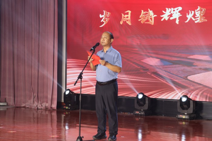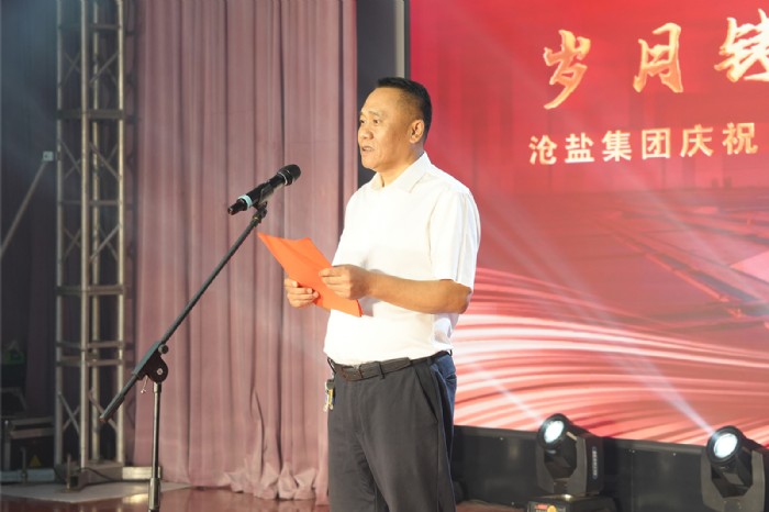 滄州市委宣傳部副部長(zhǎng)王超,滄鹽集團(tuán)黨委書記、董事長(zhǎng)劉建軍分別致辭。王超在致辭中充分肯定了滄鹽集團(tuán)在66年的發(fā)展歷程中取得的成績(jī)。他指出,新時(shí)代,滄鹽集團(tuán)要實(shí)現(xiàn)高質(zhì)量發(fā)展,必須高度重視思想政治工作,不斷創(chuàng)新思想政治工作的方式方法,提高思想政治工作的實(shí)效性。在中華人民共和國(guó)成立75周年即將到來(lái)之際,慶祝祖國(guó)生日的同時(shí),我們要居安思危,強(qiáng)化國(guó)防觀念和憂患意識(shí),增強(qiáng)干事創(chuàng)業(yè)的本領(lǐng),團(tuán)結(jié)一心、拼搏奮進(jìn),為實(shí)現(xiàn)滄鹽集團(tuán)的高質(zhì)量發(fā)展而努力奮斗,為建設(shè)經(jīng)濟(jì)強(qiáng)市、美麗滄州做出新的更大貢獻(xiàn)。
