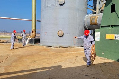 走進廠區,機器的轟鳴聲交織成一曲獨特的生產交響樂。在溴素生產氣化區、富集區、提取車間,生產帶班長正認真地盯著各項數據指標的變化,仔細進行記錄和分析,每一個細微的參數變動都逃不過他的眼睛。班組長陳金浩說:“吹溴工藝的化工生產過程需要時刻保持精神專注,不能有絲毫的懈怠馬虎,不然會大大影響溴的生產質量和產量。雖然很希望與家人一起團聚,但在這個崗位上就要履行好自己的工作職責!必撠熢O備維護的老黨員李兆峰師傅也沒有休息,他帶領著維修團隊不停穿梭在各個設備之間,仔細地巡檢、認真查看各種泵類、閥門、流量計等設備運轉情況。他們拿著工具,有條不紊地擰緊每一顆螺絲、擦拭每一個零件。兆峰師傅表示:“設備的正常運行是整個溴素生產的關鍵,更是安全生產的屏障,我們多付出一點,生產就多一份保障,不能因為是節日就放松對設備的檢查維護。”