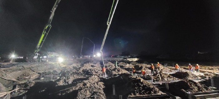 為搶工期,趕節點,確保冬季施工質量,項目部在施工前期對各班組進行了詳細的技術交底,并對各類進場材料、鋼筋連接質量、鋼筋綁扎、模板安裝等進行全面檢查,嚴把每一個操作環節,最終一次性通過驗收。在基礎混凝土澆筑施工過程中,黨員職工冒著寒冷的天氣,吃住在工地,晝夜奮戰,全程跟班作業,全方位、全過程進行嚴格質量把控和施工技術指導,基礎澆筑任務順利完成,比預計施工計劃提前10多天,用實際行動詮釋著“滄鹽速度”及“滄鹽建工”吃苦耐勞、敢打硬仗的敬業奉獻精神,并得到甲方充分肯定及高度贊譽,特意向建筑工程公司送來表揚信。