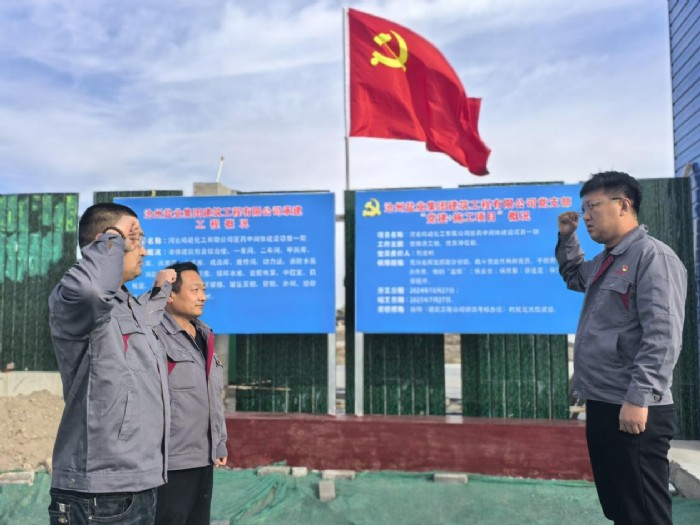 河北鳴岐化工有限公司醫藥中間體建設項目,一期工程項目金額5400余萬元,2024年10月6日正式進場施工,同時“黨旗進工地”也在同步開展。建筑公司黨支部嚴格“四制管理”,督促落實“五保措施”,和項目黨建負責人簽訂責任書。施工現場設立黨員示范崗,明確崗位職責和標準,讓黨員在工作中有清晰的行動目標。在實際工作中,黨員們以身作則,作為項目管理人員,無論是在施工工藝的把控上,還是在工作效率的提升上,都展現出高標準、嚴要求的工作態度,充分發揮黨員的先鋒模范作用。