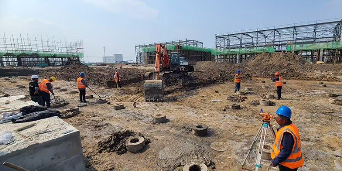 建筑工程公司為確保項目施工進度,節前召開專題會議,對“五一”期間的施工任務進行詳細安排,制定了科學合理的施工計劃。鳴歧項目為了提高施工進度,利用晚上時間進土,晝夜奮戰,保障了各個施工單體及場地基礎回填用土需要,假期期間進土1萬余方,為后續施工進度奠定了堅實基礎。為確保長蘆鹽業公司泵站工程順利推進,工程技術部調配技術骨干班組,開啟了全天候奮戰模式。截至目前,鳴歧項目一、二車間基礎墻砌筑、圈梁澆筑已完成;港城填方項目已完成噴砂區填方并通過驗收,其他項目正在加快推進中。