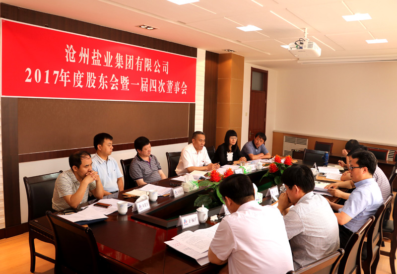 2017年度股東會暨一屆四次董事會經過認真審議,通過了《總經理工作報告》、《2016年度財務決算及2017年度財務預算的報告》、《2017年度生產經營計劃》、《2017年固定資產更新改造計劃》、《關于融資借款計劃的議案》、《關于提高占地補償標準的議案》、《關于機構設置方案的議案》、《關于職工薪酬調整方案的議案》、《滄州鹽業集團有限公司章程修正案》、《2017年項目建設推動方案的議案》等10個議案。