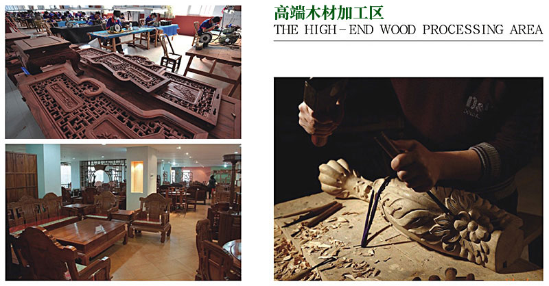 名貴木材家具生產區域占地面積約640畝,主要用于紅木等名貴木材加工及家具制作。一般木材家具生產區域占地面積約580畝,主要用于普通木材實木家具生產加工。木材初加工區是進行木材初加工的區域,占地面積約820畝,主要用于建筑材、家具材、各類板材的生產加工。烘干區占地面積約250畝,主要對木材進行烘干定型。